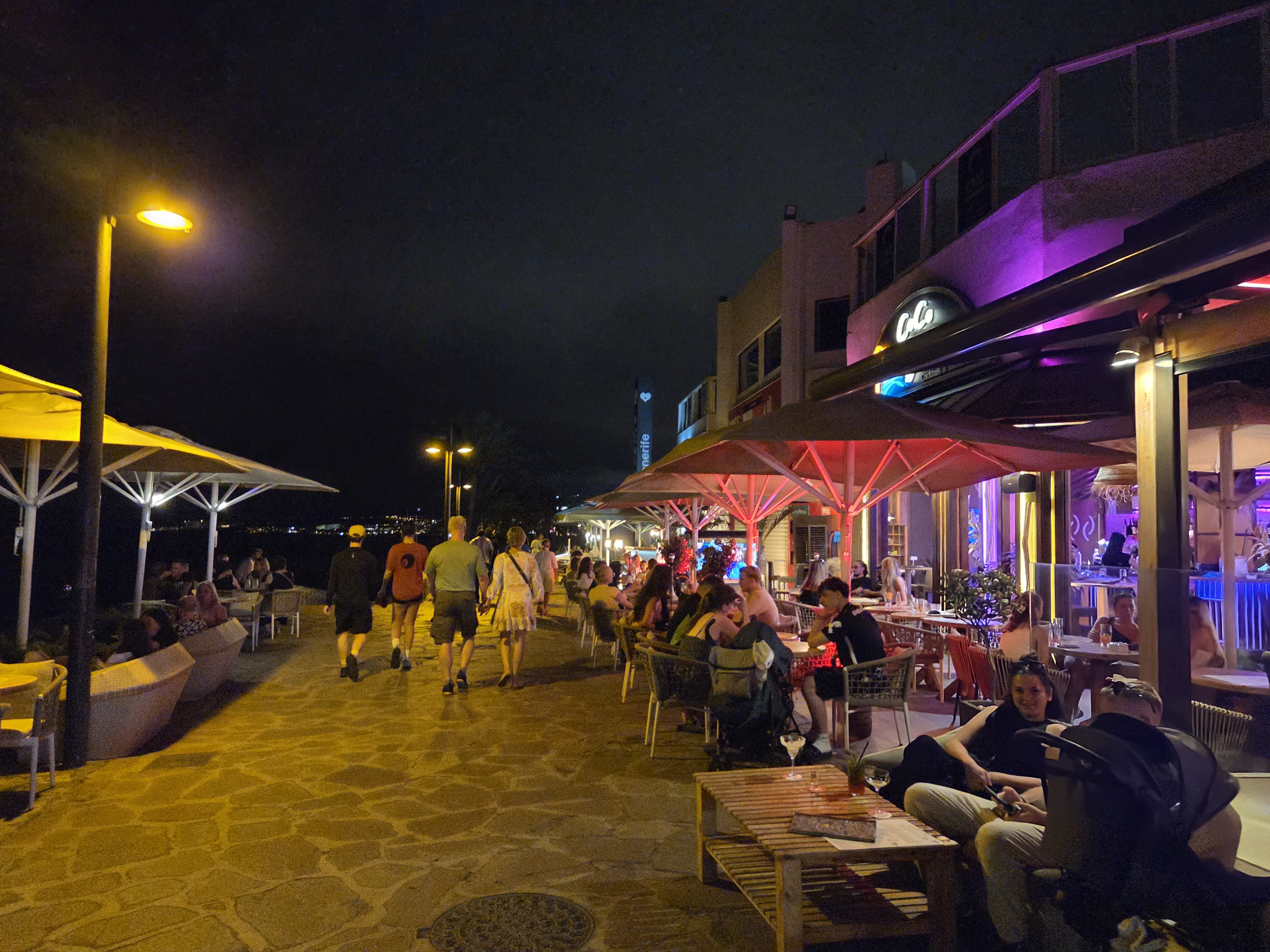 Nach dem Konzert lockt ein Spaziergang entlang der Promenade – Bars, Lounge-Terrassen und Meerblick runden den Musikabend im Süden Teneriffas ab.