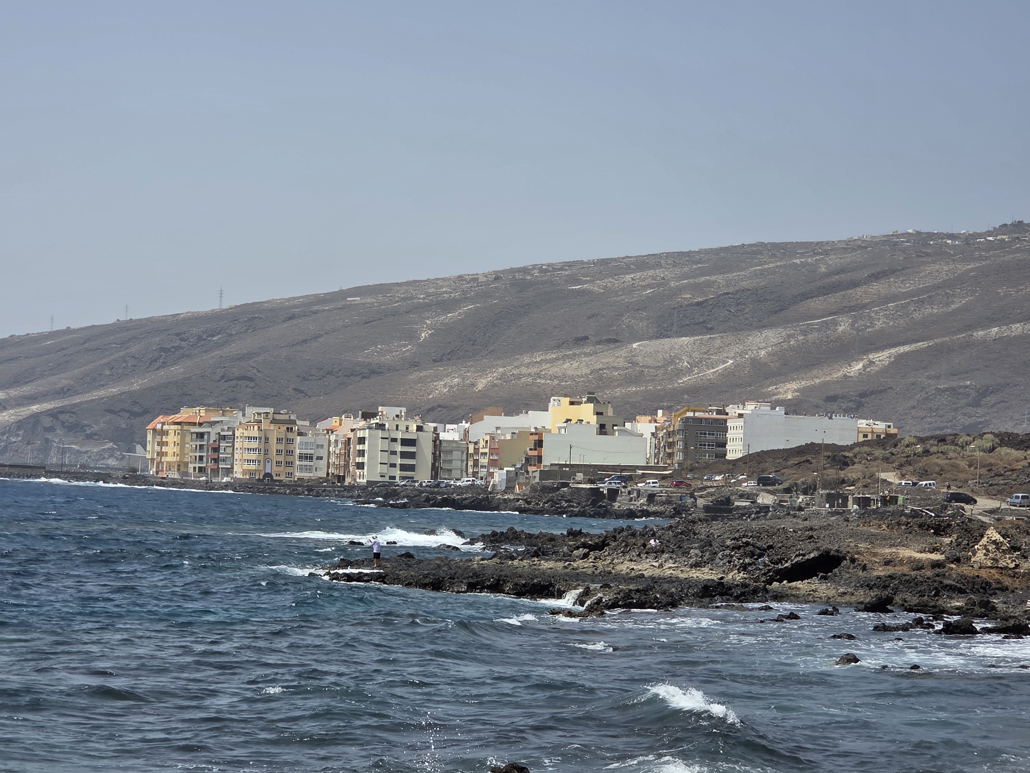 Am nördlichen Abschnitt öffnet sich die Sicht auf Puertito de Güímar. Der Kontrast zwischen bunter Küstenbebauung und dunklen Lavafeldern ist typisch für diese Ecke Tenerifes.
