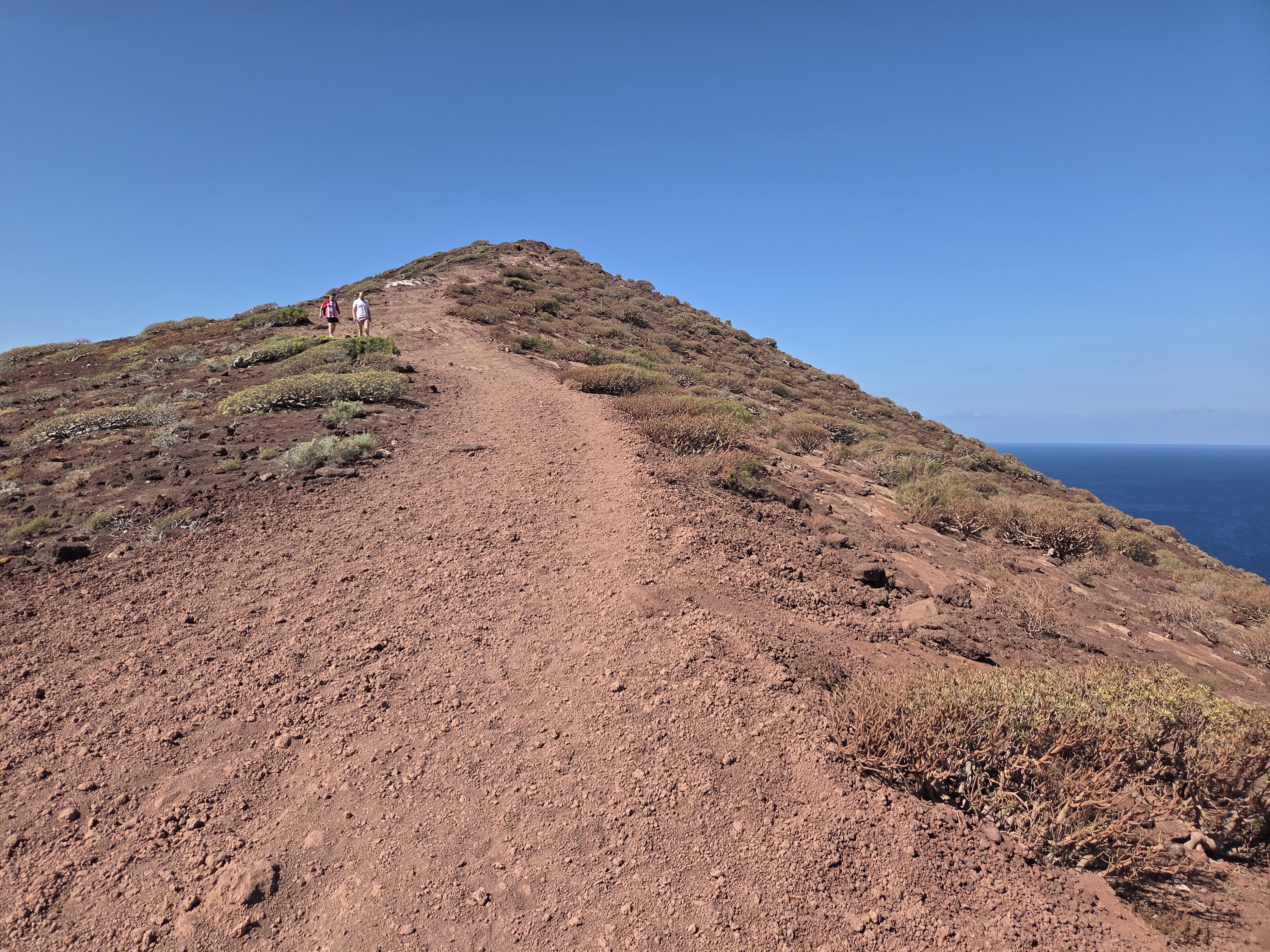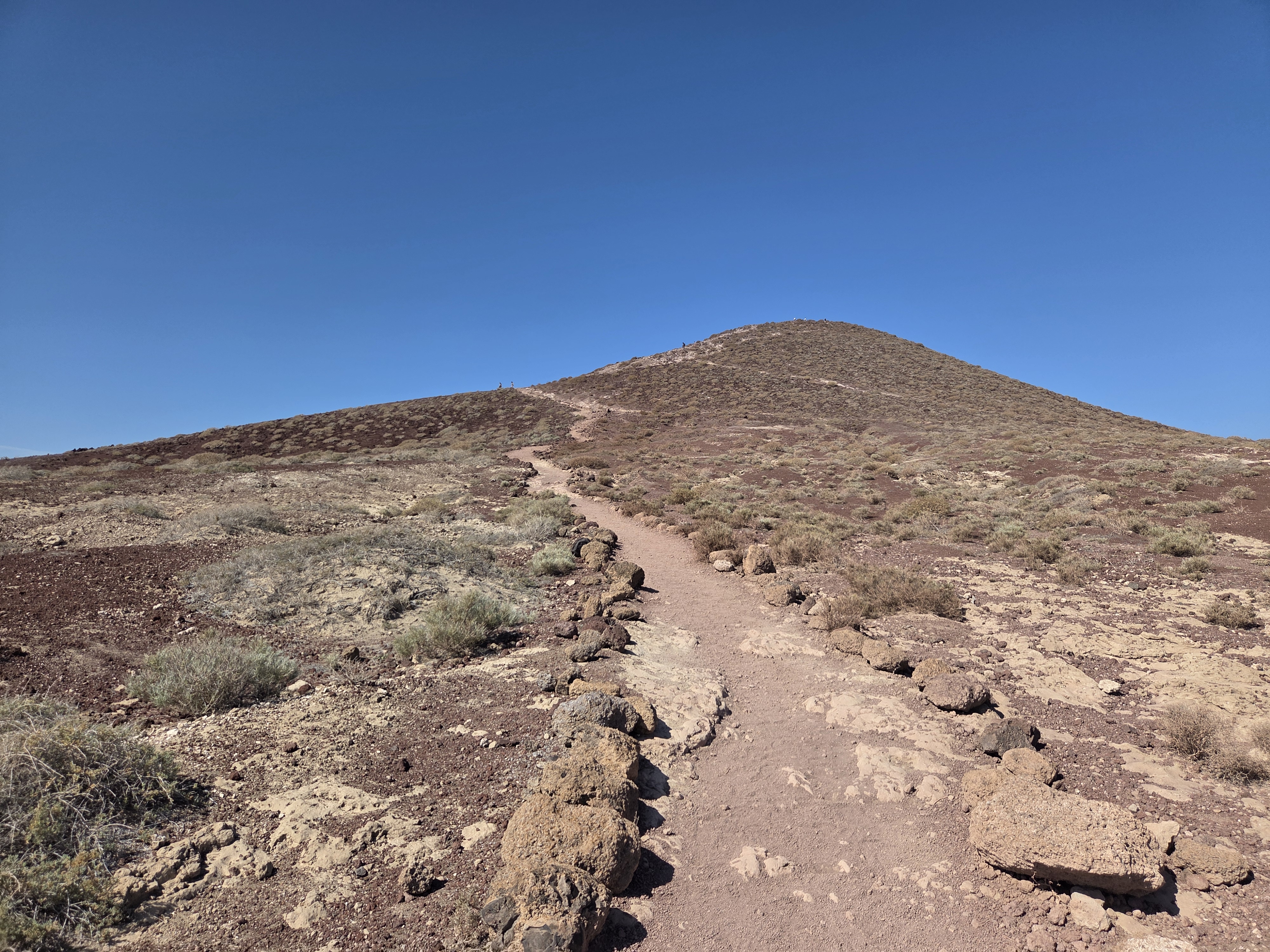 Je höher man kommt, desto stärker zeigt sich die Namensgeberin: die intensiv rote Färbung des Vulkankegels. Kleine, windgeformte Büsche klammern sich an den mineralreichen Boden.