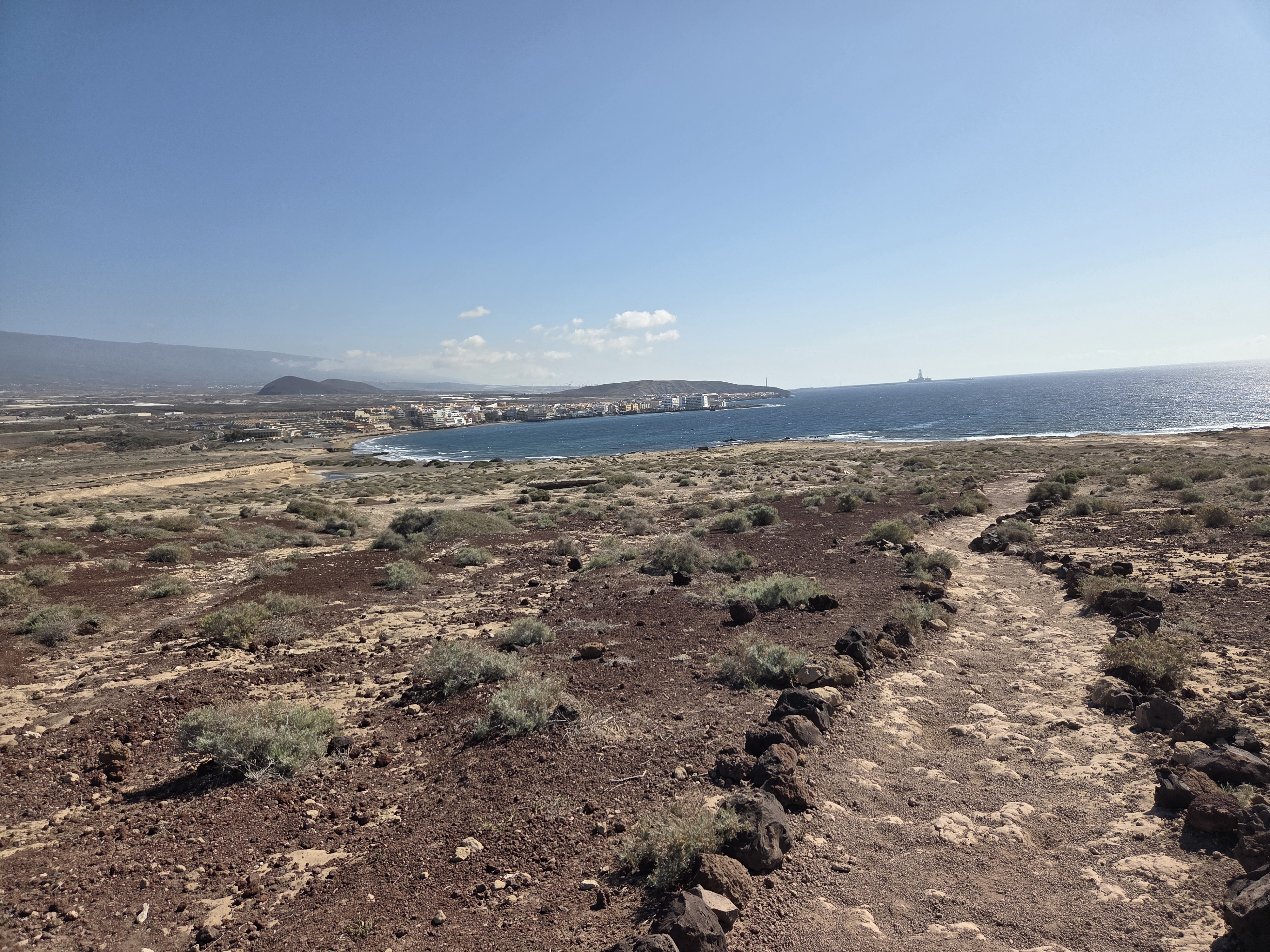 Zum Einstieg lohnt sich ein Blick über El Médano: Die weite Bucht, Promenade und Hotels liegen zu Füßen des Vulkans. So lässt sich der Verlauf der Küste und die Lage des Reservats gut einordnen.